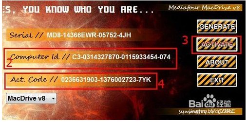这时我们要复制Computer ID 里的数字,粘贴到注册机里的Computer ID里面,点ACTIVATE ,Act code 出现的注册码复制粘贴到刚才的Activation code里面,点下一步就可