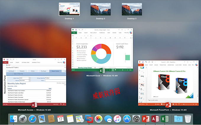 无论大家是希望在 Mac 上运行 Windows 10、Office、Win8、Win7、XP,还是 Ubuntu、CentOS、Deepin、Debian、Fedora、Linux Mint 等系统,VMware Fusion 11 都允许大家像启动一个软件那样毫无压力地运行一款操作系统,并且对于虚拟Windows系统,大家不但可以窗口化或全屏运行,而且vmware fusion虚拟机独有的Unity模式带来无与伦比的无缝的体验,比如将其中的应用程序从 Windows 里 “拖拽出来” 直接在 Mac平台上使用,感觉就像使用 Mac 版应用一样,非常的顺滑流畅,由此可见通过强大的VMWare Fusion 11虚拟机,我们可以直接从 Dock、Spotlight 或 Launchpad 中启动 Windows 程序,且能在 Exposé、Spaces 和 Mission Control 中像查看 Mac 应用程序一样查看它们,还能使用 Mac 快捷键和直观的手势与Windows原生程序进行轻松交互,这可以让习惯了Mac的操作方式的广大果粉们感到务必的亲切。