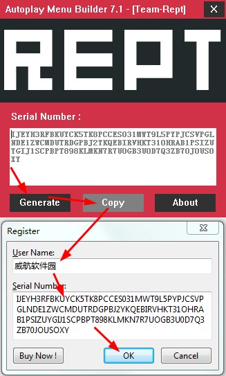 繁星软件园温馨提示:作为更专业的光盘菜单制作软件和光盘启动菜单制作工具AutoPlay Menu Builder是商业收费软件,大家只需要安装运行主程序,使用AutoPlay Menu Builder注册机参考下图激活即可。