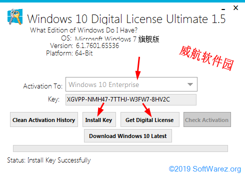 繁星软件园温馨提示:在同一硬件中,在Windows10重新安装时,大家爱无需再次运行Windows 10 Digital License Ultimate,并且在第一次联机联系时,MS服务器将识别HWID并自动授予激活,但倘若安装了Windows10 VL版本,在这种情况下,您必须使用该版本的通用密钥才能重新获得激活,当然大家也可以在Windows 10 Digital License Ultimate中使用密钥安装选项,.