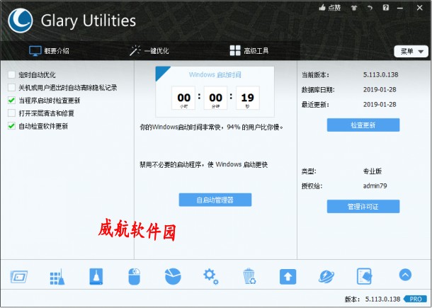 由于Glary Utilities Pro是商业收费软件,繁星软件园本次分享的是Glary Utilities Pro注册版本,内置有glary utilities 激活码,参考下图激活即可,后续支持在线升级。