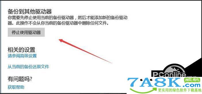 10、点击开始备份即可开始第一次备份,倘若想要停止备份,点击停止使用驱动器;