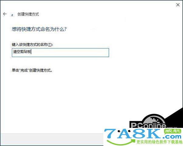 5、在这里给快捷方式起一个名字,比如:清空剪贴板;