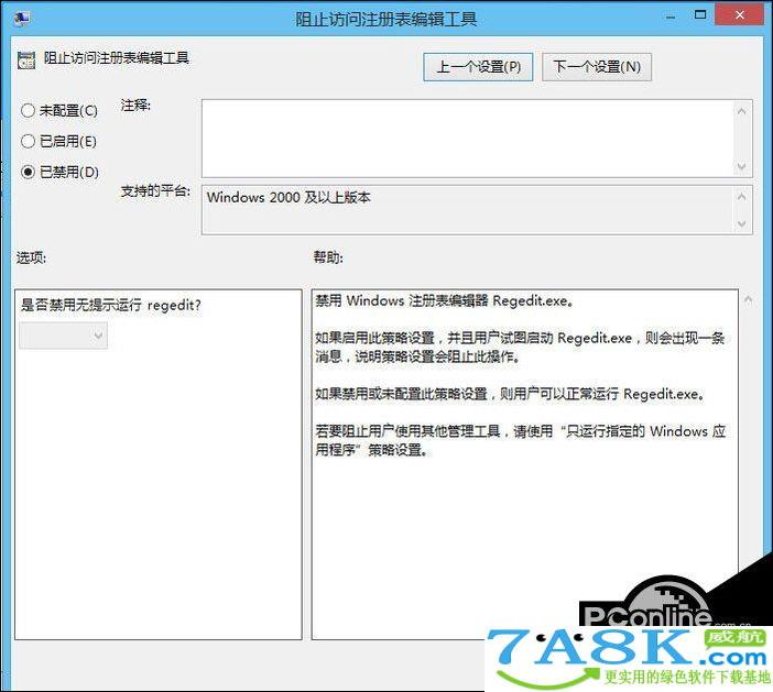 4、接着,右侧菜单下拉,找到“阻止访问注册表编辑器”选项;