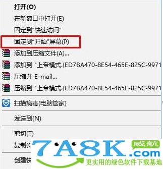 2、在【上帝模式】上单击右键,选择【固定到“开始”屏幕】即可。