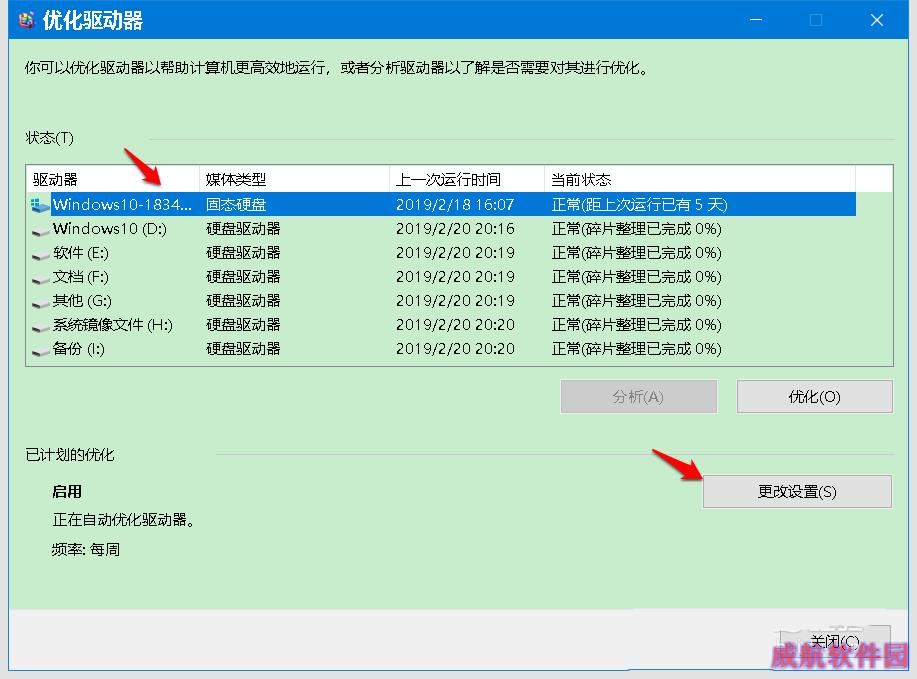 4、 在优化驱动器 - 优化计划 窗口中,我们可以看到: