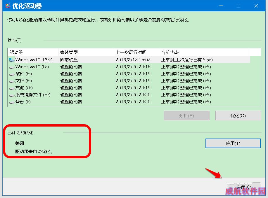 通过上述设置,已成功关闭了Windows 10系统下的SSD硬盘的碎片整理功能。