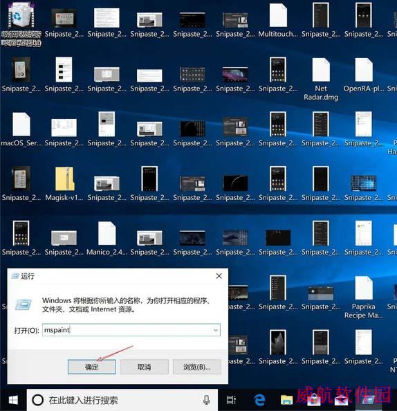 4、输入【mspaint】,然后点击确定,那么即可打开画图了的。