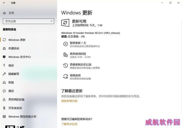 【win10使用攻略】今天凌晨微软推送了最新的Windows 10 19H1快速预览版18334系统更新,不过并非所有的Windows 10版本都能收到推送。