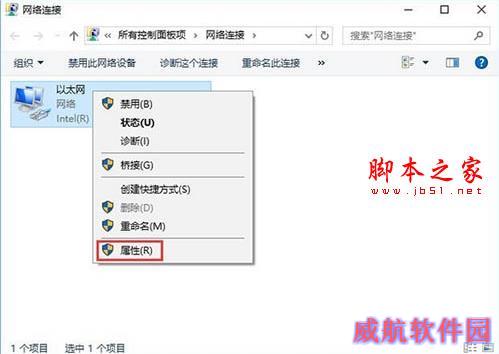 2、右键点击“以太网”(或双击后点击属性),所示无线的用户在wlan上单击右键,在弹出的菜单中点击【属性】;如图所示: