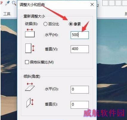 5.在弹出的窗口中点击像素,然后设置图片的大小,繁星软件园这里设置的是500。
