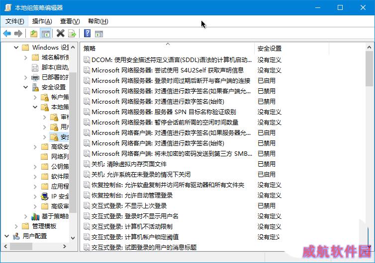 3、依次打开:计算机配置-Windows设置-安全设置-本地策略-安全选项