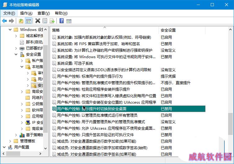 4、双击打开:用户账户控制:提示提升时切换到安全桌面