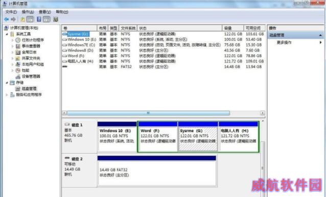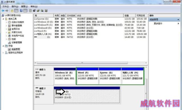 4、只要这里有显示,说明移动磁盘是好的,只是盘符无分配,或者有盘符,和其他的分区有冲突了;