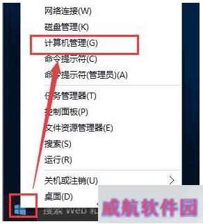 1、首先右键点击开始菜单,选择“计算机管理”。如图所示: