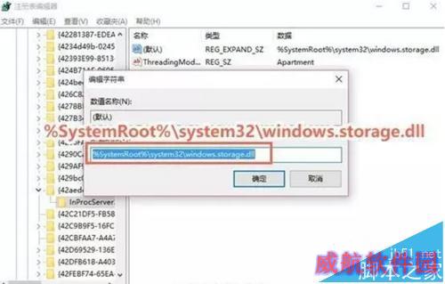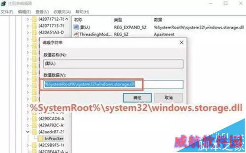 2、之后找到“HKEY_CLASSES_ROOT\\Wow6432Node\\CLSID\\{42aedc87-2188-41fd-b9a3-0c966feabec1}\\InProcServer32\\和HKEY_CLASSES_ROOT\\CLSID\\{42aedc87-2188-41fd-b9a3-0c966feabec1}\\InProcServer32\\”,之后将其数值数据替换为“%SystemRoot%\\system32\\windows.storage.dll”。