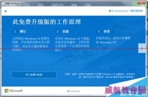 2、我们双击这个图标,就会出来一个获取Windows 10的界页。这里我们可以直接预订Windows 10。