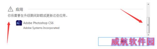5、但我们往下拉一点点,这还有其它提示,也是我们需要繁星软件园温馨提示的。我这里提示我有这个软件在升级后需要重装。倘若我们不想重装,就只好不升级了。