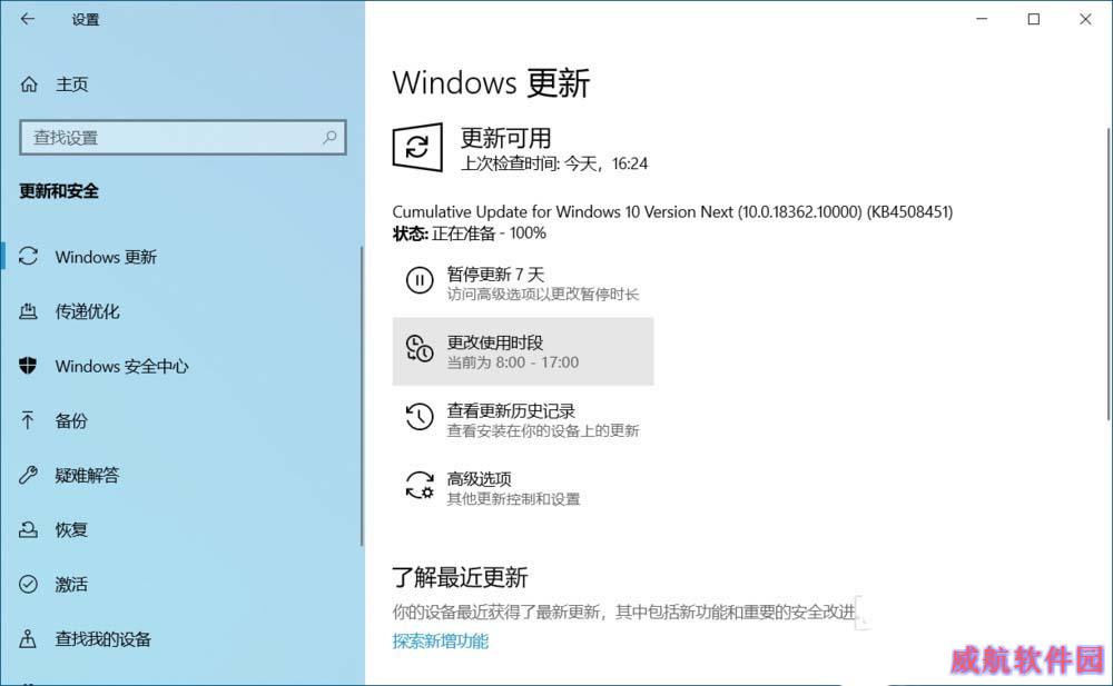 【win10使用攻略】2019年7月2日,微软向慢速通道中的Insiders发布了Windows 10 19H2预览版18362.10000更新,版本为:Cumulative Update for Windows 10 Version Next (10.0.18362.10000) (KB4508451)。Windows 10 19H2将包含一系列功能,用于部分性能改进、企业级功能和质量增强功能,并将使用服务技术(如月度累积更新流程)提供给运行2019 Windows 10更新五月版的客户。