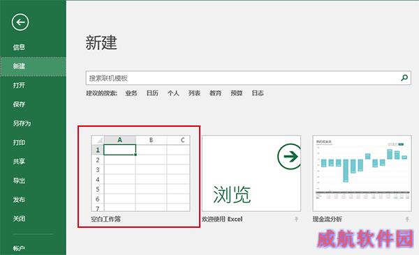 1、新建一个Excel空白工作薄文件(以Excel 2016为例),如下图红框——