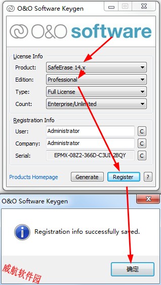 繁星软件园温馨提示:作为更高水准的数据擦除软件,O&O SafeErase是商业收费软件,本次分享的是O&O SafeErase注册版本,大家只需要下载O&O SafeErase安装程序,然后断运行O&O SafeErase注册机,参考下图即可无限制使用这款硬盘数据彻底删除神器。