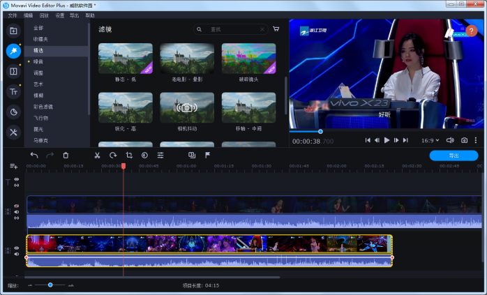 节拍侦测:Movavi Video Editor Plus 2020可自动侦测音频节奏,以便与项目的节拍同步。