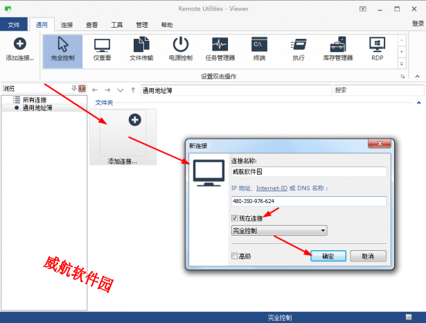 第二步:安装remote utilities主控端,安装过程需要输入密码,这个密码记录下后续进行远程控制操作的时候需要用到,安装成功后运行,双击主界面的【添加链接】按钮,填入安装remote utilities受控端生成的【互联网账号】,为了便于识别大家可以把名字改下,勾选【现在连接】,然后点【确定】按钮即可完成远控电脑的添加控制操作。