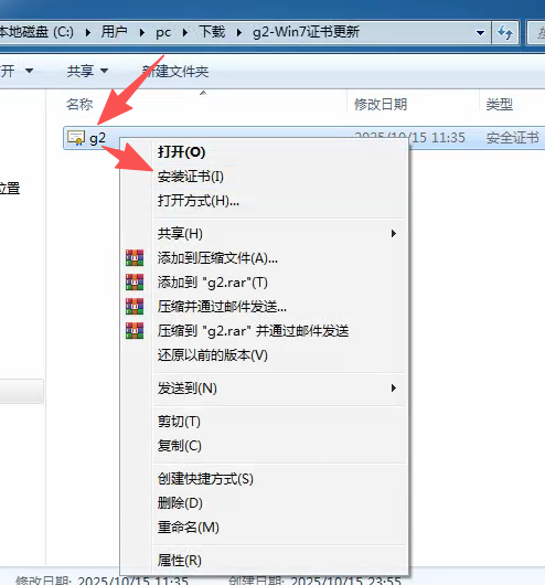 方案2(适用于不想升级系统的门店):下载Win7证书并手动安装到操作系统,操作步骤如下: