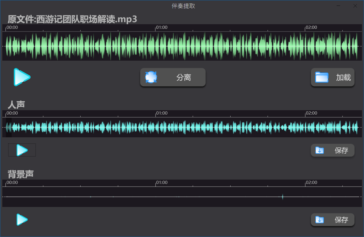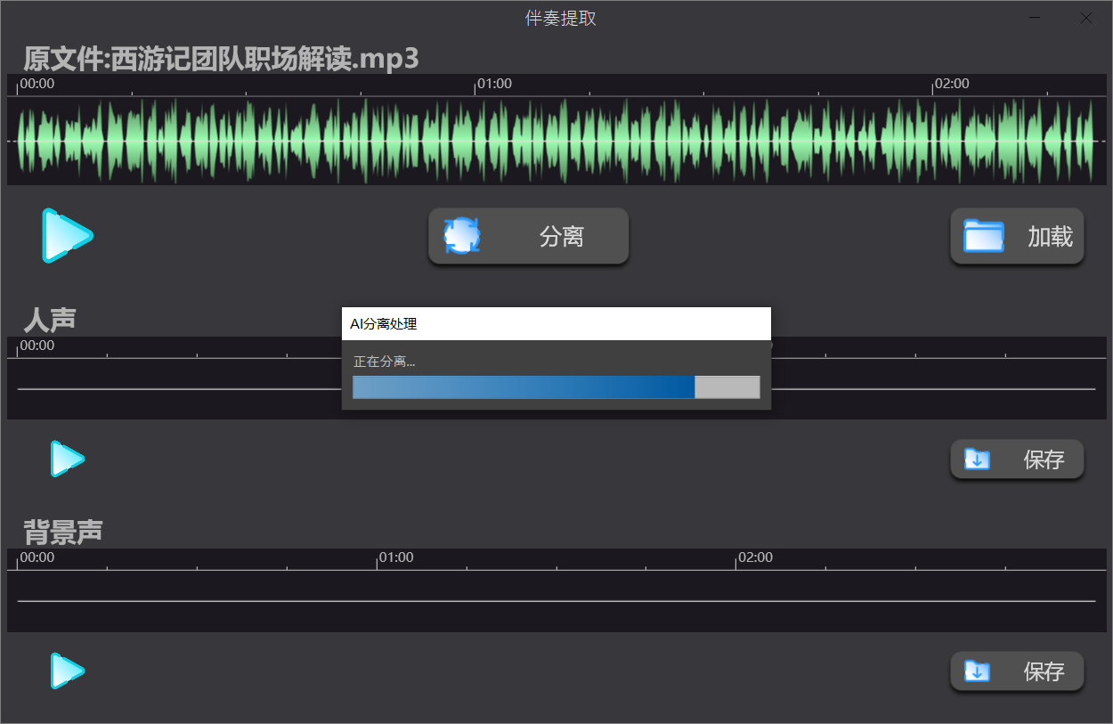 在强大的服务器支持下,分离一首3-4分钟的歌曲通常只需要几十秒到几分钟,大大节省了用户的等待时间。