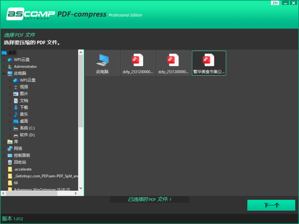 - 选择需压缩的 PDF 文件(支持多文件批量选择)。