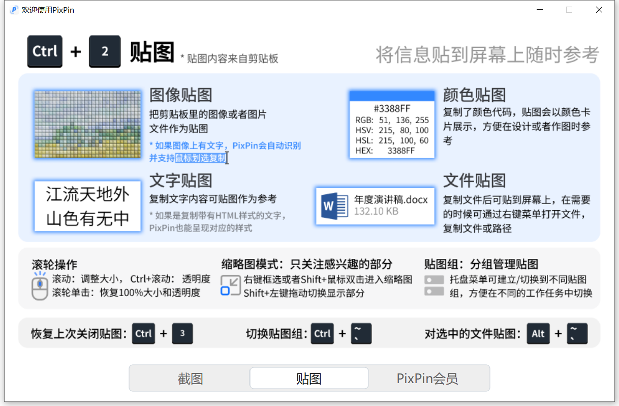 - •批量操作:贴图模式下可同时打开多个截图,右键统一管理