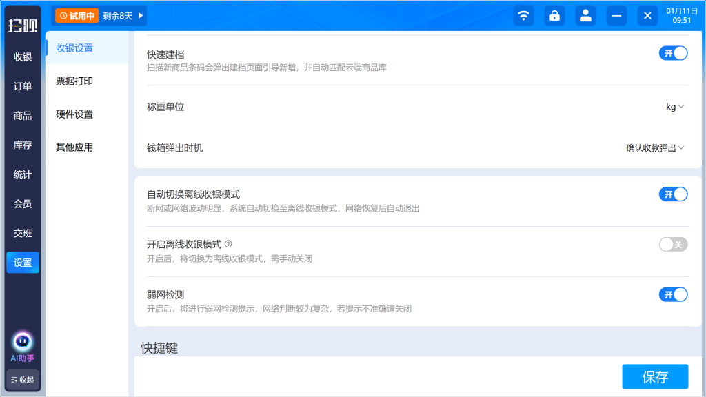 场景化设计:针对不同零售业态(标品超市 vs 生鲜零售)提供专属收银模式,操作更高效。