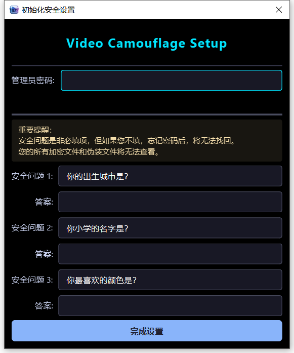 温馨提示:密码就是一切: 如果没有设置安全问题,一旦忘记管理员密码,没有任何办法可以找回您的数据。