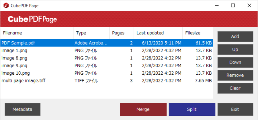 CubePDF Page 是一款免费开源的Windows平台PDF分割合并工具,可让大家轻松合并和拆分 PDF 文件,能将图片或者多个pdf合并成一个pdf文件,这款pdf拆分合并工具的使用起来非常简单,只需拖放 PDF 文件并单击合并或拆分按钮即可。除了 PDF 文件之外,图像和照片(BMP、PNG、JPEG、GIF、TIFF)也可以合并为 PDF 页面。